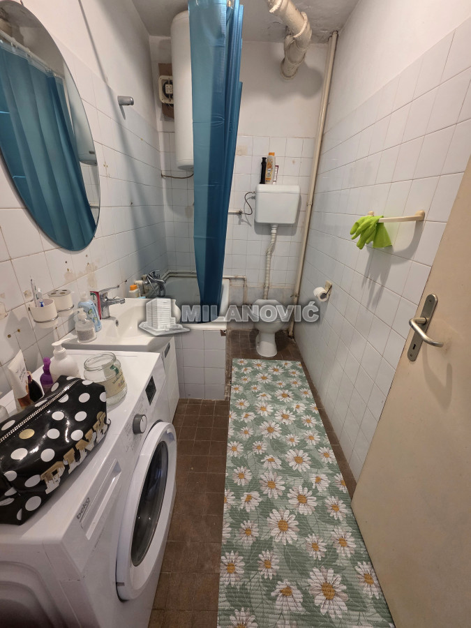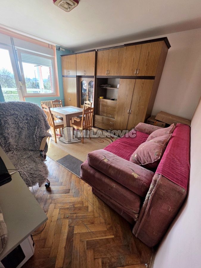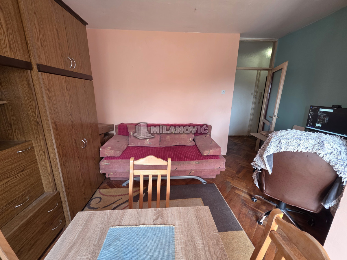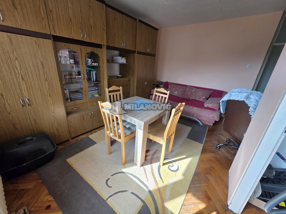 Na prodaju manji jednosoban stan od 35m2+terasa i pripdajući podrum u zgradi starije gradnje bez lifta. Stan se nalazi na drugom spratu od pet. Uknjižen 1/1 i moguća je kupovina i za keš i putem stambenog kredita. Na stanu je promenjena spoljna stolarija, sada je PVC sa roletnama i ugrađena klima.Grejanje je gradska toplana, odjavljeno i plaća se samo održavanje.Odlična spratnost i sama pozicija stana,svetao,sunčan,mali režijski troškovi. Besplatan parking ispred zgrade. U krugu od 100m su vrtić, osnovna i srednja škola, apoteka, pijaca i dva mega marketa.Odličan za život ili kao investicija za izdavanje.
