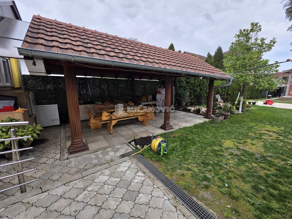 🔑 VAŠ NOVI DOM ILI PAMETНА INVESTICIJA – JAGODINA Prodaje se kvalitetna i funkcionalna kuća površine 181 m², smeštena na placu od 2,16 ari, uz dodatni plac od 1,1 ari sa uređenim letnjikovcem i fontanom – savršeno mesto za odmor i uživanje. Izuzetno atraktivna lokacija. 🏡 Fleksibilan koncept – 3 u 1 Kuća je projektovana tako da može funkcionisati kao: ✔ Jedna porodična celina ✔ Ili tri zasebne stambene jedinice / apartmana (odlična investicija) 🛋 Raspored: • Donji nivo: prostrana dnevna soba (38 m²), predsoblje, 2 kupatila, 2 kuhinje + dodatna soba • Gornji sprat: sobe/apartmani koji se već uspešno izdaju studentima Kuća ima • 6 soba• 3 kupatila • 3 kuhinje• 3 zasebna ulaza,grejanje na gas, 2 klima uređaja,video nadzor,interfon,elektronska brava,alarm. Cena kuće sa većim placem,letnjikovcem i fontanom je 206000€