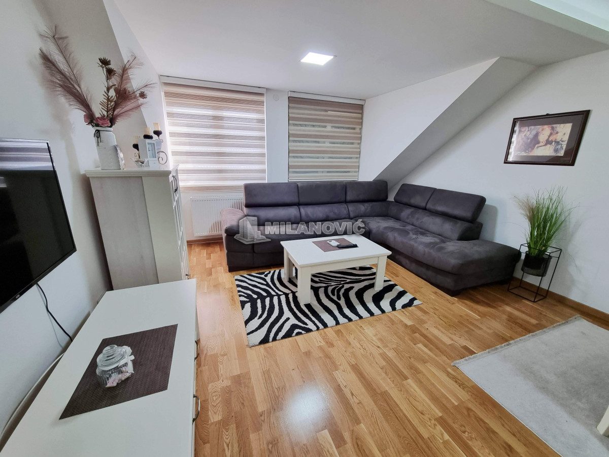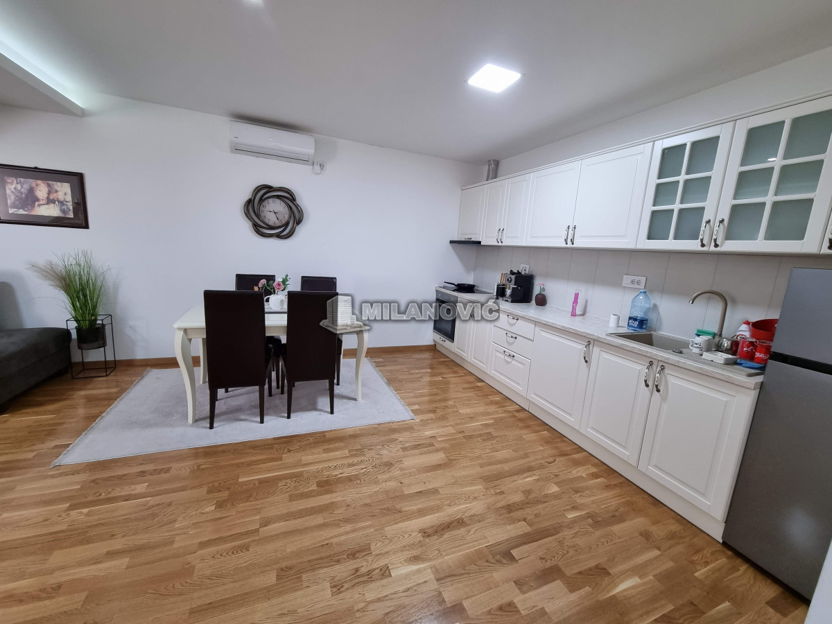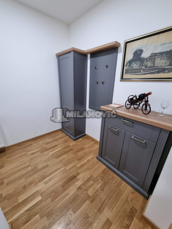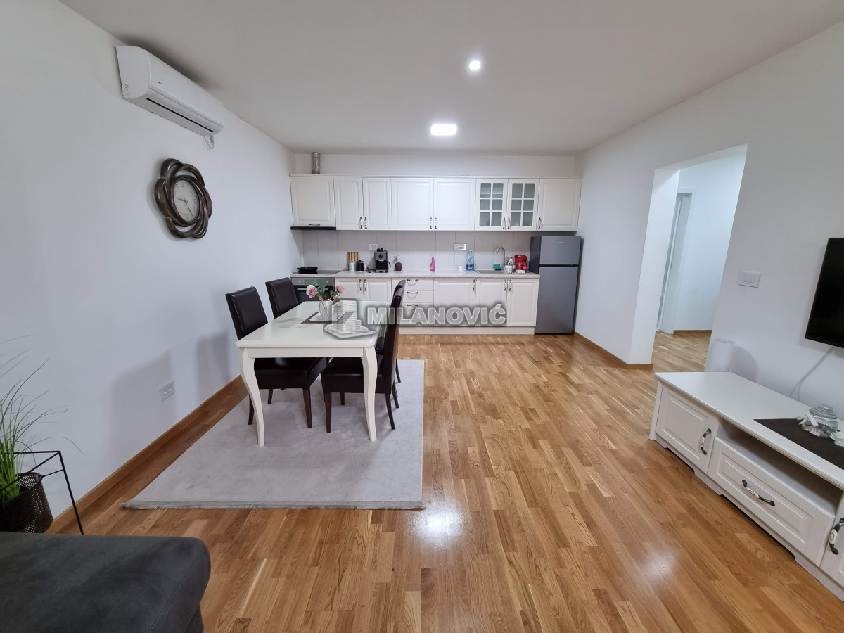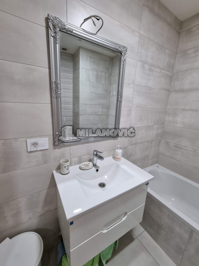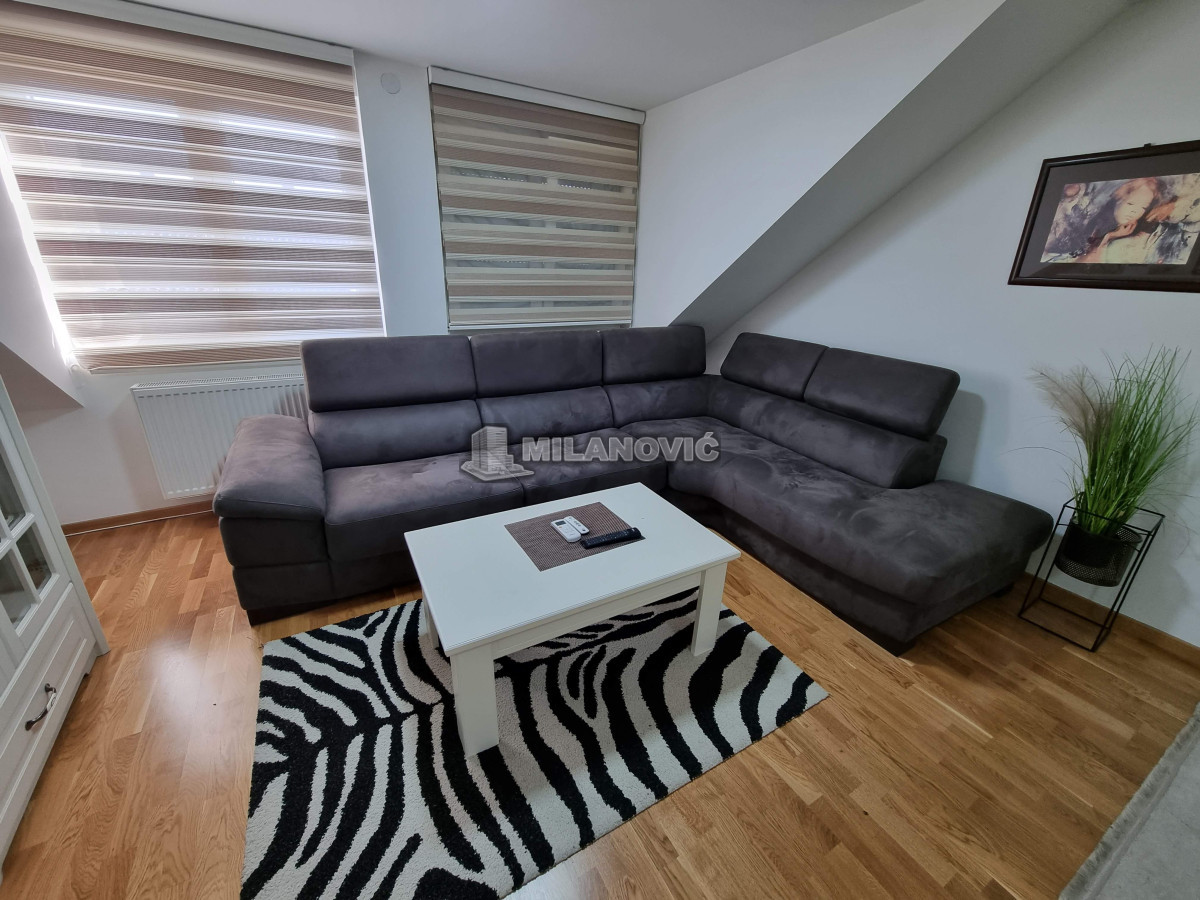 Kompletno namešten dvosoban stan u novoj zgradi. Stan ima jednu spavaću sobu i veliki dnevni boravak sa kuhinjom i trpezarijom.Ima internet u stanu nema kablovsku Tv već samo set -top box.Depozit obavezan kao i usluga agencije , ugovor o zakupu na minimum 6 meseci. Kućni ljubimci nisu dozvoljeni. Pušenje u stanu nije dozvoljeno.