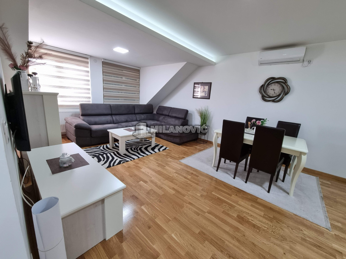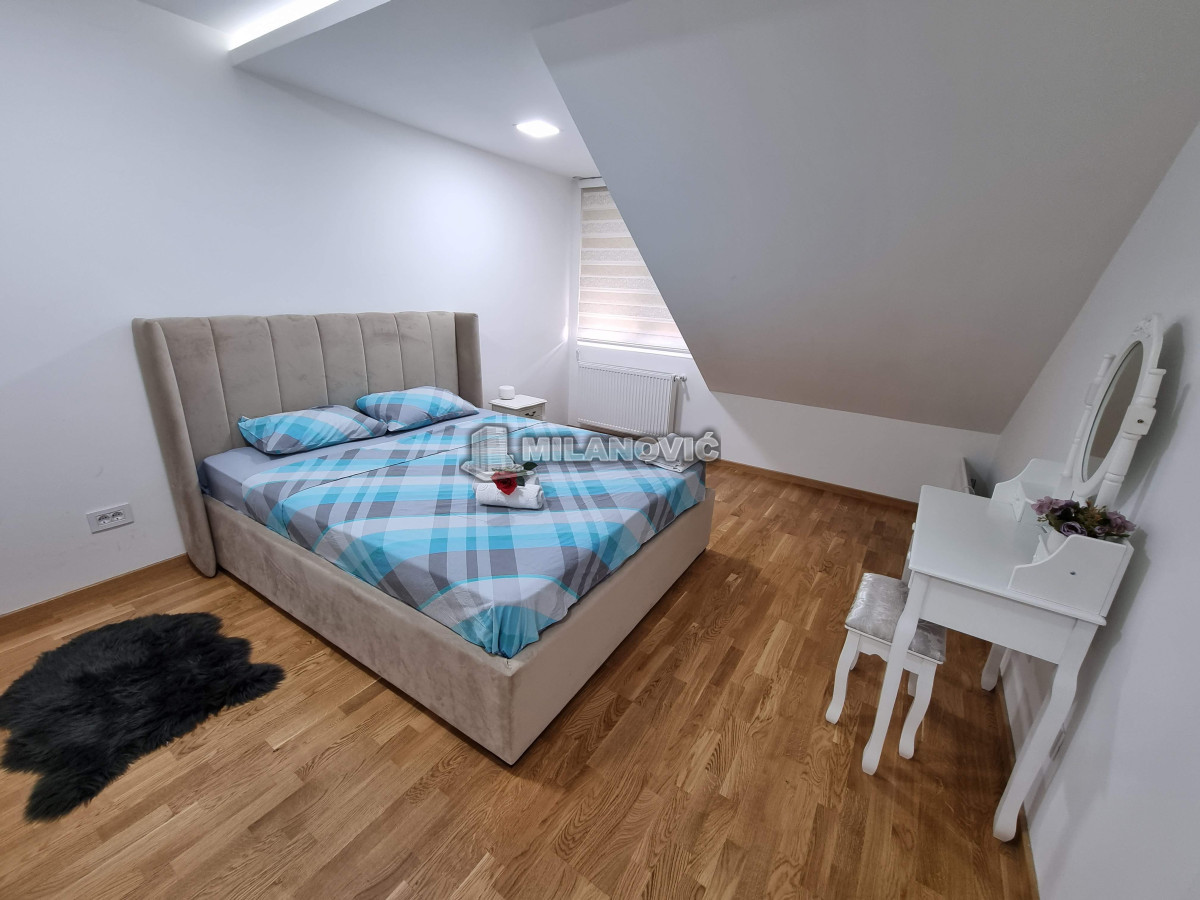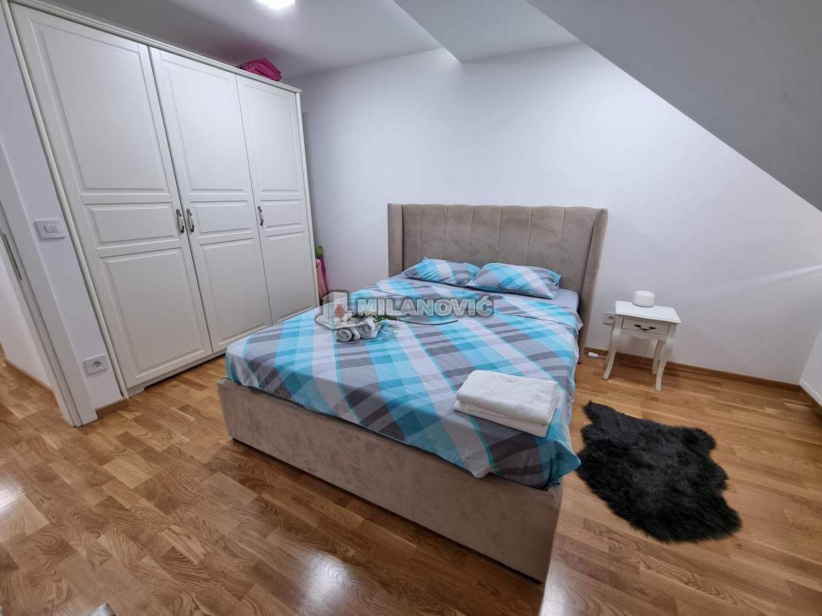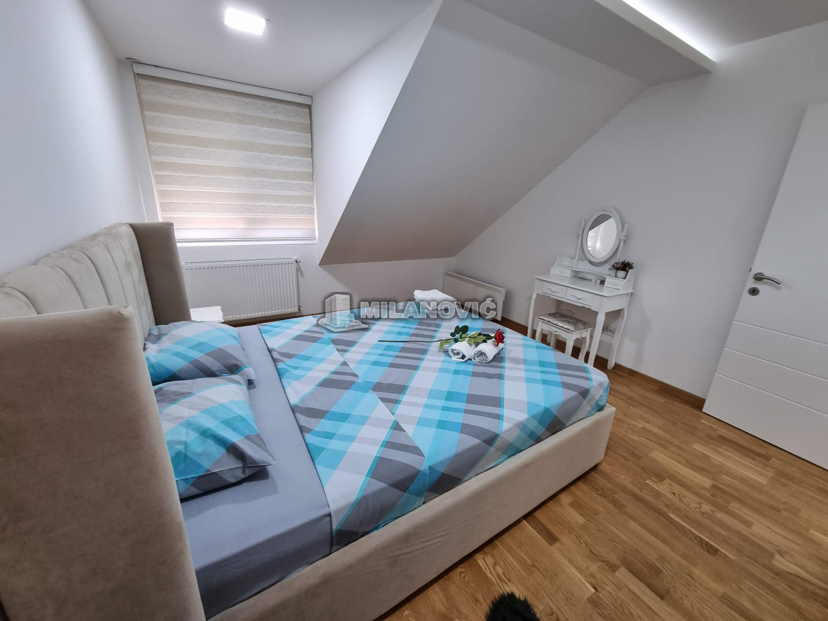 Kompletno namešten dvosoban stan u novoj zgradi. Stan ima jednu spavaću sobu i veliki dnevni boravak sa kuhinjom i trpezarijom.Ima internet u stanu nema kablovsku Tv već samo set -top box.Depozit obavezan kao i usluga agencije , ugovor o zakupu na minimum 6 meseci. Kućni ljubimci nisu dozvoljeni. Pušenje u stanu nije dozvoljeno.