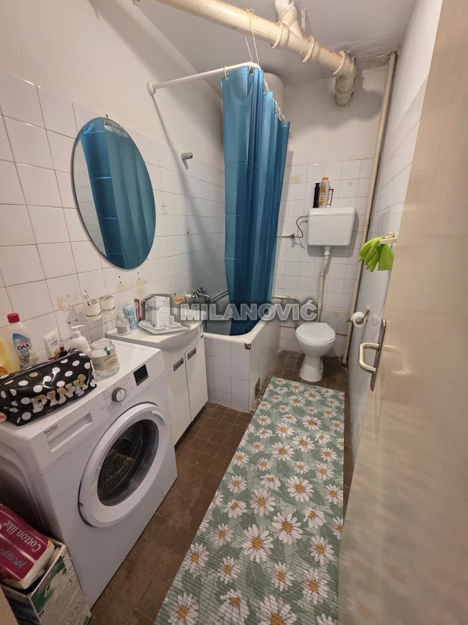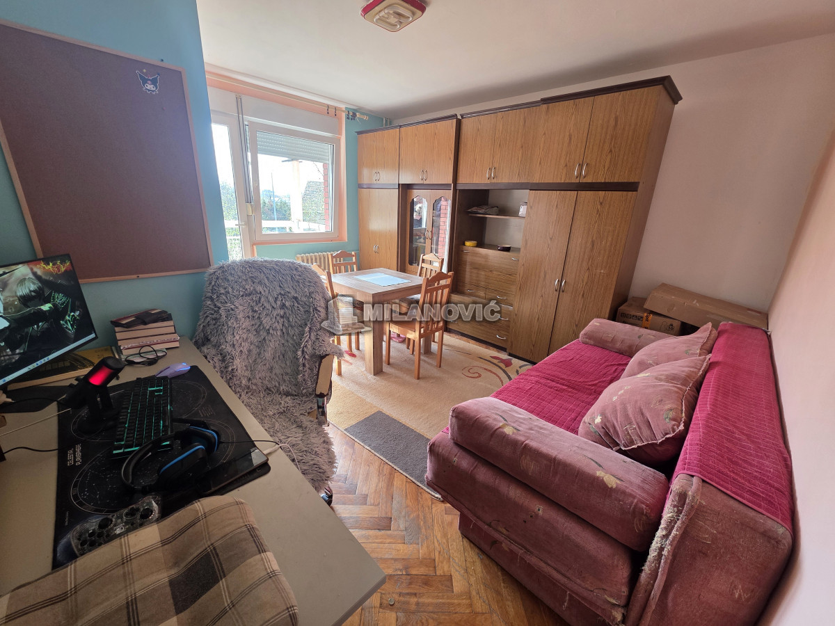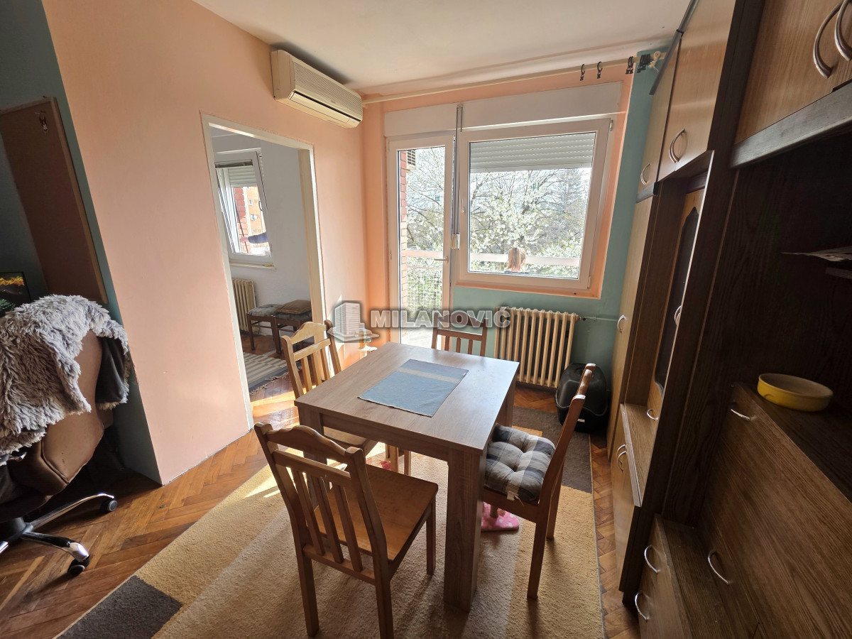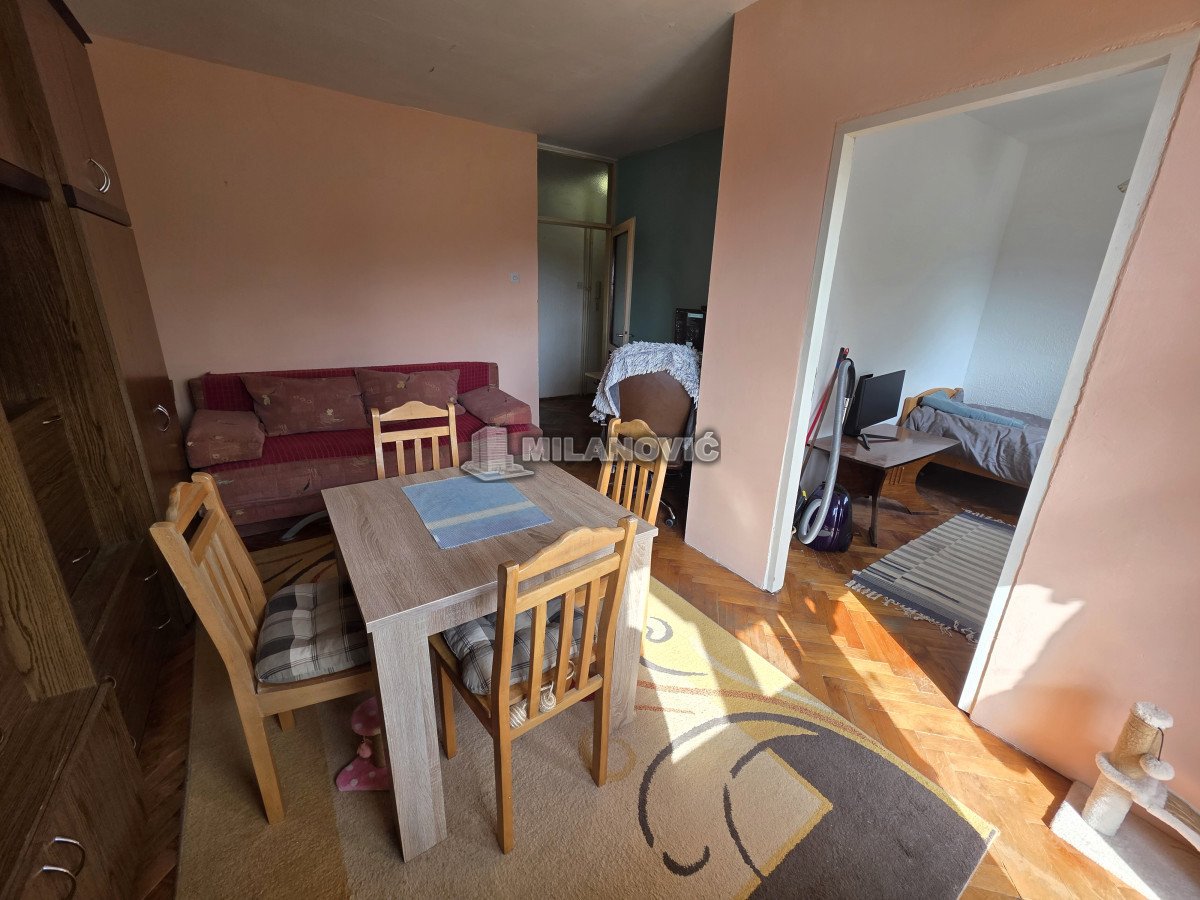 Na prodaju manji jednosoban stan od 35m2+terasa i pripdajući podrum u zgradi starije gradnje bez lifta. Stan se nalazi na drugom spratu od pet. Uknjižen 1/1 i moguća je kupovina i za keš i putem stambenog kredita. Na stanu je promenjena spoljna stolarija, sada je PVC sa roletnama i ugrađena klima.Grejanje je gradska toplana, odjavljeno i plaća se samo održavanje.Odlična spratnost i sama pozicija stana,svetao,sunčan,mali režijski troškovi. Besplatan parking ispred zgrade. U krugu od 100m su vrtić, osnovna i srednja škola, apoteka, pijaca i dva mega marketa.Odličan za život ili kao investicija za izdavanje.